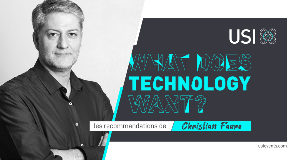 Pour la première fois cette année, la conférence USI s'éditorialise et pose la question : que veut la technologie ? Les curateurs USI partagent leurs recommandations pour mieux comprendre la thématique et commencer à s'interroger. Et puisqu'il est possible d'aborder le sujet à travers une multitude de thématiques, c'est une sélection hétéroclite qu'ils vous proposent : des livres comme des films, du réel et de la fiction, des œuvre cultes ou plus confidentielles...